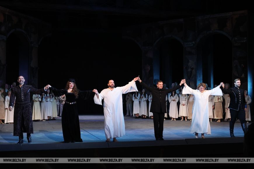 Гасцей вечара запрашалі прыйсці ў беларускіх нацыянальных касцюмах або ўплесці ў сваё ўбранне некаторыя элементы. А прадоўжыла вечар нацыянальная опера "Сівая легенда" Дзмітрыя Смольскага.-0-
