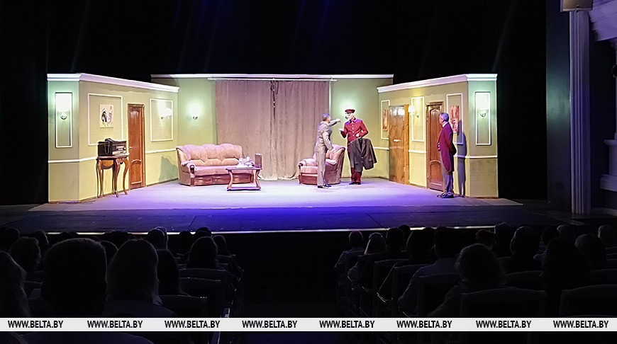 23 верасня, Мінск /Кар. БЕЛТА/. Паўночна-асяцінскі дзяржаўны акадэмічны тэатр імя Уладзіміра Тхапсаева прадставіў на сцэне Купалаўскага тэатра камедыю моднага брытанскага драматурга Рэя Куні "Ён, яна, акно, нябожчык" у рамках гастроляў, перадае карэспандэнт БЕЛТА.
