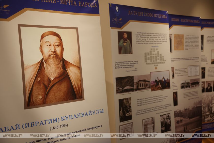 Першы намеснік міністра культуры Дзмітрый Шляхцін адзначыў, што вельмі цяжка пераацаніць уклад Абая ў развіццё казахскага народа. "Яго мы можам назваць, як і Янку Купалу, прарокам сваёй нацыі, які апярэдзіў яе шлях, стварыў літаратурную мову, што немалаважна для любога народа, які прэтэндуе на самадастатковасць і самастойнасць. Прадметы, прадстаўленыя на выставе, дадуць любому наведвальніку магчымасць падрабязней даведацца пра адну з самых важных фігур у гісторыі Казахстана. Гэта не проста паэт, літаратар, філосаф - гэта сапраўды энцыклапедыст, які працаваў у многіх напрамках. Абай перакладаў рускую і заходнюю класічную літаратуру на казахскую мову, каб стварыць неабходны базіс для далейшага развіцця народа і нацыі", - падкрэсліў Дзмітрый Шляхцін.