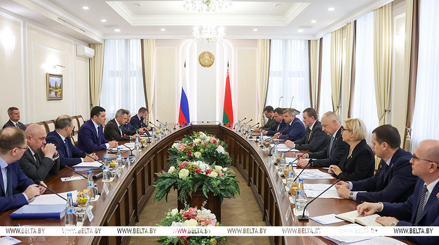 15 кастрычніка, Мінск /Кар. БЕЛТА/. Прэм'ер-міністр Беларусі Аляксандр Турчын і міністр прамысловасці і гандлю Расійскай Федэрацыі Антон Аліханаў абмеркавалі пытанні прамысловай кааперацыі ў час сустрэчы ў Мінску, перадае карэспандэнт БЕЛТА.
