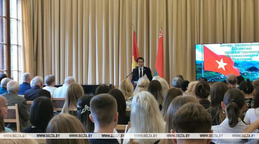 8 верасня, Мінск /Кар. БЕЛТА/. В'етнам сумесна з Беларуссю закладваюць трывалую аснову для доўгатэрміновага супрацоўніцтва. Важнасць гэтага адзначыў Надзвычайны і Паўнамоцны Пасол Сацыялістычнай Рэспублікі В'етнам у Рэспубліцы Беларусь Нгуен Ван Чунг у Доме дружбы на вечары, прысвечаным 80-годдзю абвяшчэння незалежнасці гэтай краіны, паведамляе БЕЛТА.