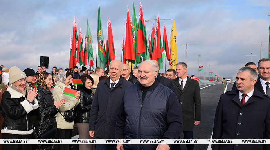 6 лістапада, Мазыр /Кар. БЕЛТА/. Прэзідэнт Беларусі Аляксандр Лукашэнка на цырымоніі адкрыцця абноўленага моста ў Мазыры цераз раку Прыпяць растлумачыў, чаму важна выбіраць прадукцыю айчынных вытворцаў і брэндаў, перадае карэспандэнт БЕЛТА.