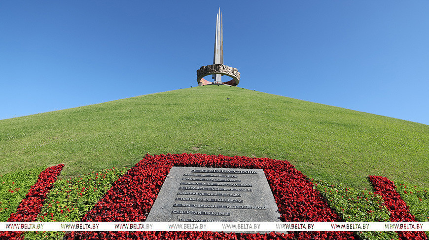 Кіраўнік дзяржавы ўсклаў вянок да падножжа Кургана Славы, пасля яго кветкі да мемарыяла ўсклалі вышэйшыя службовыя асобы краіны.