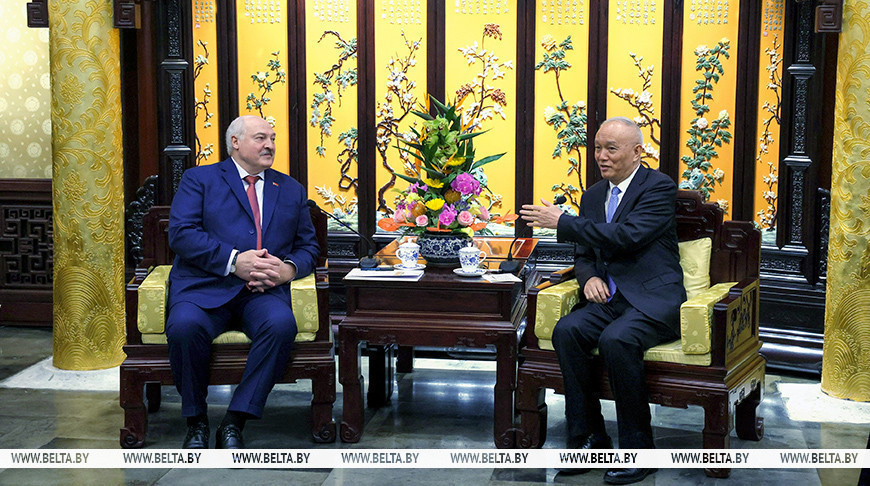 2 верасня, Пекін /Кар. БЕЛТА/. Прэзідэнт Беларусі Аляксандр Лукашэнка ў Пекіне сустрэўся з членам Пастаяннага камітэта Палітбюро ЦК Кампартыі Кітая, сакратаром Сакратарыята і кіраўніком Канцылярыі ЦК КПК Цай Цы, перадае карэспандэнт БЕЛТА.