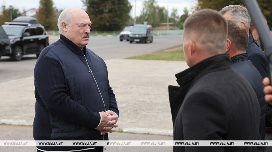 Кіраўнік дзяржавы наведаў таксама малочнатаварны комплекс прадпрыемства "Гарадзец", кукурузнае поле гэтай гаспадаркі, дзе Прэзідэнту далажылі аб ходзе асенніх палявых работ. Акрамя таго, Аляксандр Лукашэнка праехаў па больш аддаленых ад асноўных дарог кутках раёна, у тым ліку ў наваколлі вёсак Крывель і Путнікі. Фінальнай кропкай у час рабочай паездкі кіраўніка дзяржавы стаў нядаўна рэканструяваны камбікормавы завод у Шклове.-0-