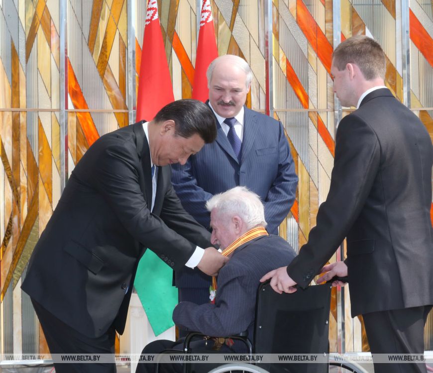 Па-сапраўднаму кранальны момант адбыўся ў зале Перамогі музея. Там Сі Цзіньпін узнагародзіў медалём Міру 15 беларускіх ветэранаў, якія ўдзельнічалі ў баях з японскімі агрэсарамі ў канцы Другой сусветнай вайны. "Вы ўнеслі вялікі ўклад у справу барацьбы з фашызмам. Вы з'яўляліся цвёрдымі абаронцамі міру на зямлі", - сказаў кітайскі лідар.