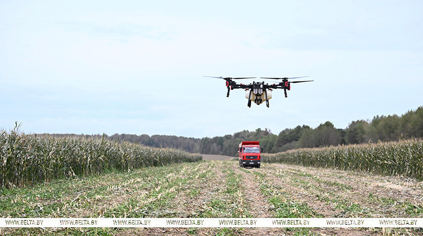 Кіраўніку дзяржавы паказалі тэхналогію дэсікацыі дронамі. Гэта працэс перадуборачнага высушвання раслін, які дазваляе мінімізаваць страты і аптымізаваць збор ураджаю. Дроны выкарыстоўваюцца для дэсікацыі рапсу, сланечніку, кукурузы, соі, збожжавых і зернебабовых, што дае магчымасць раўнамерна наносіць дэсіканты нават на вільготнай глебе.