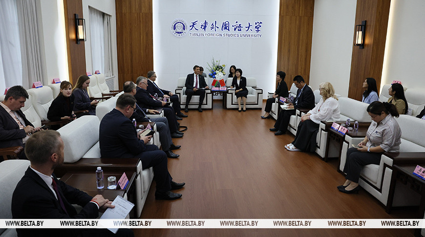 На сустрэчы з сакратаром парткама Цяньцзіньскага ўніверсітэта замежных моў Чжоу Хунлэй і рэктарам Лі Інін абмяркоўвалася тэматыка арганізацыі студэнцкіх абменаў, развіцця адукацыйнага супрацоўніцтва, арганізацыі ўзаемных перакладаў літаратурных твораў на кітайскую і беларускую мовы.