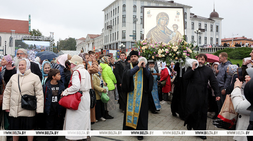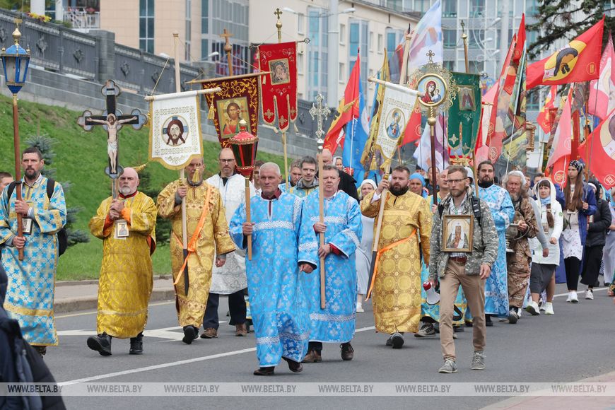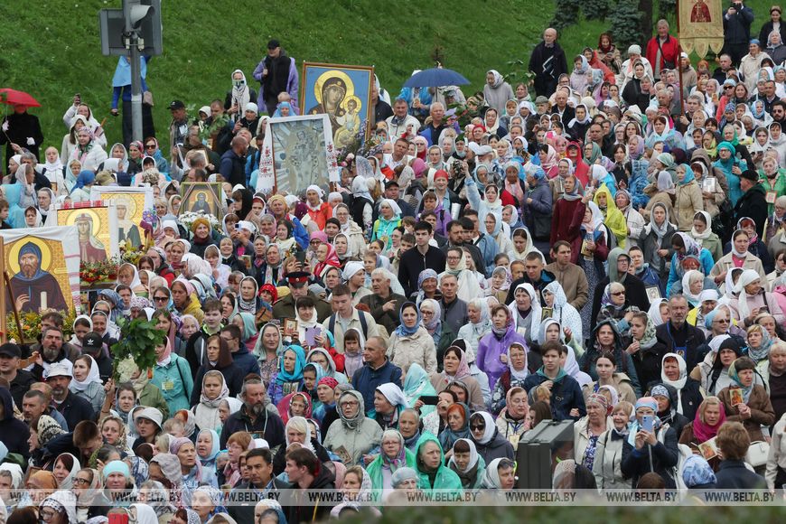 Святкаванні пачаліся з урачыстага саборнага шэсця па праспекце Пераможцаў, якое стала заключным этапам IV Усебеларускага хрэснага ходу. Вернікаў суправаджалі цудатворныя абразы Божай Маці "Жыровіцкі" і "Мінскі", а таксама іншыя святыні.