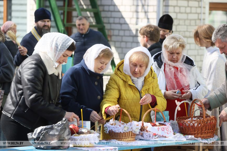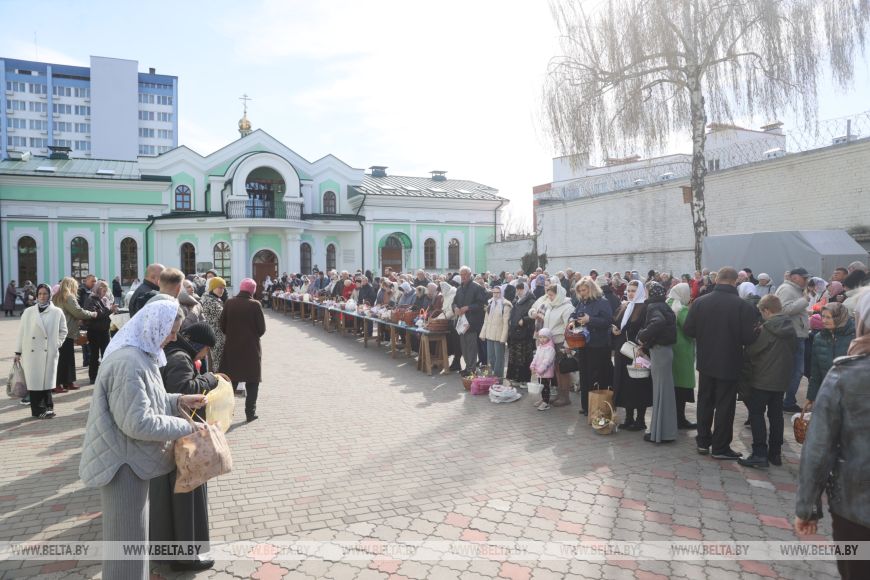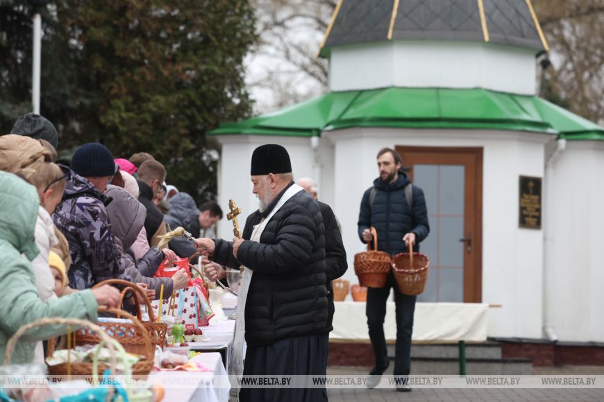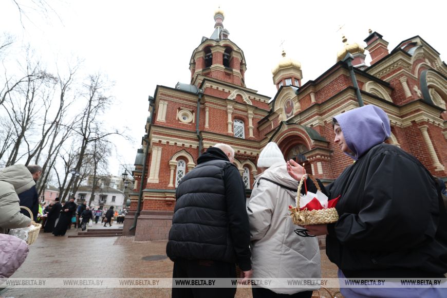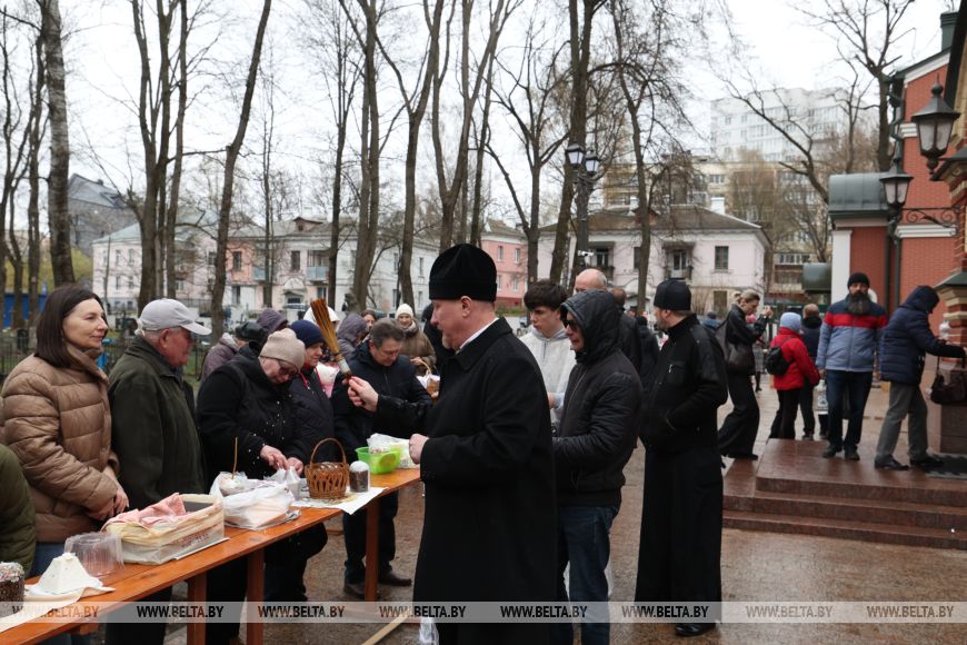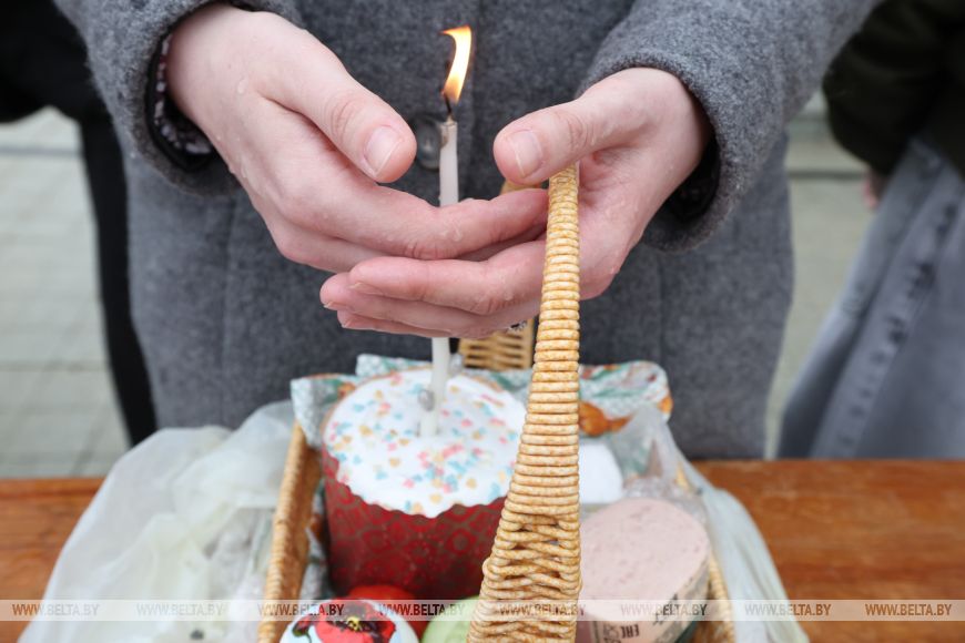 11 красавіка, Мінск /Кар. БЕЛТА/. Праваслаўныя вернікі асвячаюць велікодныя стравы ў храмах перад Вялікаднем, перадае карэспандэнт БЕЛТА.