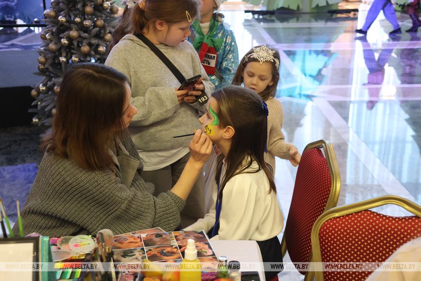 Казачныя персанажы сустракалі дзяцей проста на ўваходзе ў Залу ўрачыстых цырымоній. Менавіта тут разгарнулася сцэна для паказу і пляцоўкі для інтэрактыву. Маленькім гасцям Палаца Незалежнасці адразу прапанавалі шмат актыўнасцей і майстар-класаў. Дзеці маглі зрабіць сваімі рукамі сувеніры на любы густ: святочныя паштоўкі, калядныя свечкі, ёлачныя цацкі, казачныя маскі, чароўныя карціны і магніцікі "Конік" з сімвалам 2026 года.