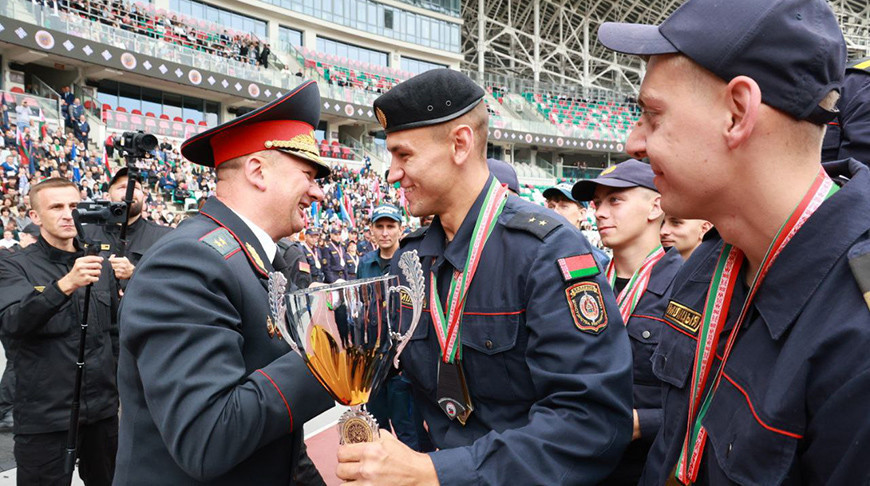 12 верасня, Мінск /Кар. БЕЛТА/. На сталічным стадыёне "Дынама" адбылася цырымонія ўзнагароджвання пераможцаў XXII Рэспубліканскага агляду-конкурсу прафесійнага майстэрства супрацоўнікаў Дэпартамента аховы. Аб гэтым БЕЛТА паведамілі ў МУС.