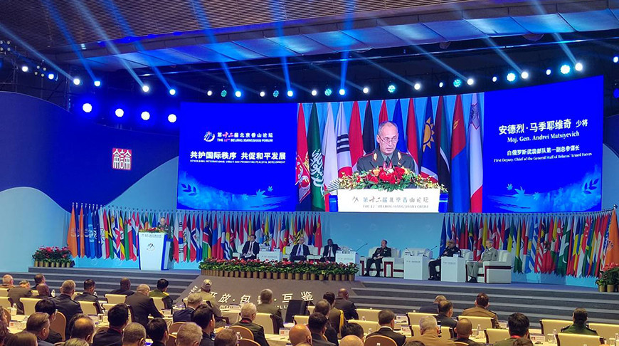 Беларуская ваенная дэлегацыя пад кіраўніцтвам Андрэя Маціевіча прымае ўдзел у 12-м Сяншаньскім форуме па пытаннях бяспекі. Тэма мерапрыемства - "Ахова міжнароднага парадку і сумеснае садзейнічанне мірнаму развіццю". Удзельнікі мерапрыемства абмяняліся думкамі па найбольш актуальных праблемах міжнароднага парадку дня.