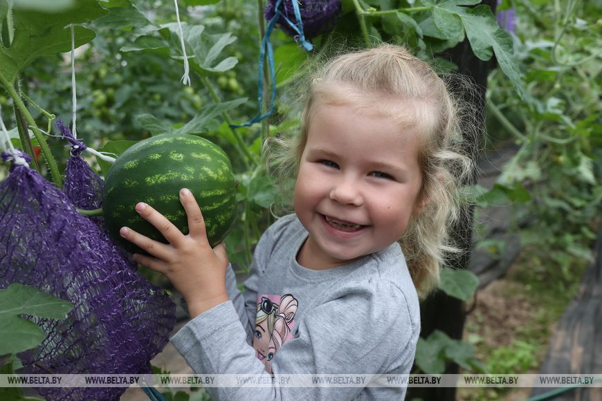 Маша, Вадзім і Анечка, можна сказаць, растуць каля цяпліц, на зямлі. Клапатлівыя бацькі ўладкавалі для іх зону адпачынку: арэлі, горку, пясочніцу. Як расказала з усмешкай мама Кацярына, у раддом яна адпраўлялася непасрэдна адсюль, з градак. З маленства дзеці побач з бацькамі, у калясках спяць пад дрэвамі, пакуль тыя працуюць. Таму з ранняга ўзросту ведаюць, адкуль бярэцца карысная ежа і колькі яна патрабуе клопату.