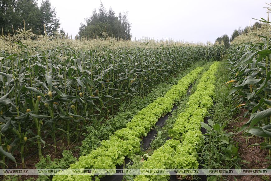 Асноўная агародніна, якую культывуюць Говіны, - агуркі і таматы, спеюць яны ў цяпліцах. Побач на полі разбілі невялікі ўчастак з кукурузай.