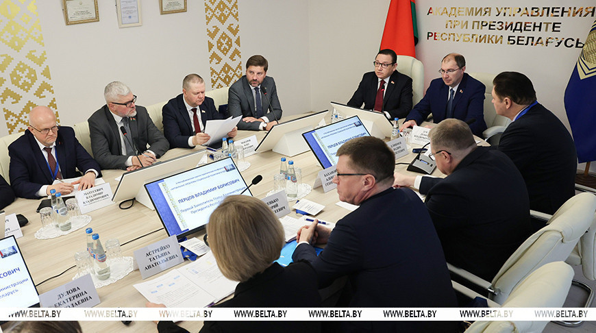 Удзельнікаў сустрэчы прывітаў першы намеснік кіраўніка Адміністрацыі Прэзідэнта Уладзімір Пярцоў. "Сёння мы абмяркоўваем у цэлым пытанні будаўніцтва дзяржавы, дзяржаўнага кіравання, практычныя падыходы, у тым ліку да ідэалагічнай работы. Гэта тыя асноўныя напрамкі, па якіх Акадэмія кіравання выступае распрацоўшчыкам метадычных рэкамендацый і планаў. Размова ідзе і аб рабоце з моладдзю, і аб гістарычнай палітыцы, аб сацыяльнай сферы і многіх іншых пытаннях, па якіх мы разам з Акадэміяй кіравання ўзаемадзейнічаем, каб стварыць тэарэтычную базу для яе далейшай рэалізацыі ў рэгіёнах, у галінах і ў цэлым у дзяржаве", - сказаў ён.