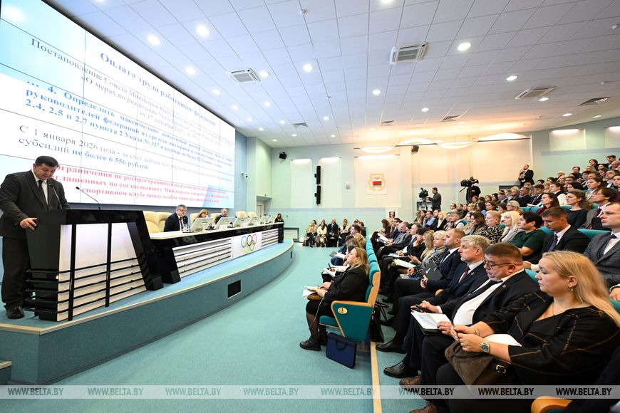 16 снежня, Мінск /Кар. БЕЛТА/. У НАК Беларусі адбыўся семінар-нарада па пытаннях прымянення ўказа Прэзідэнта Рэспублікі Беларусь ад 17 верасня 2025 года нумар 337 "Аб аказанні падтрымкі спартыўным арганізацыям", паведамляе карэспандэнт БЕЛТА.
