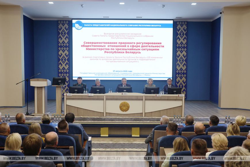Пашыранае выязное пасяджэнне Савета Палаты прадстаўнікоў Нацыянальнага сходу пад старшынствам Ігара Сергяенкі прайшло сёння на базе Універсітэта грамадзянскай абароны Міністэрства па надзвычайных сітуацыях. Тэма пасяджэння - "Удасканаленне прававога рэгулявання грамадскіх адносін у сферы дзейнасці Міністэрства па надзвычайных сітуацыях Рэспублікі Беларусь" (у рамках падрыхтоўкі да разгляду Палатай прадстаўнікоў праекта закона "Аб змяненні законаў па пытаннях дзейнасці органаў і падраздзяленняў па надзвычайных сітуацыях").