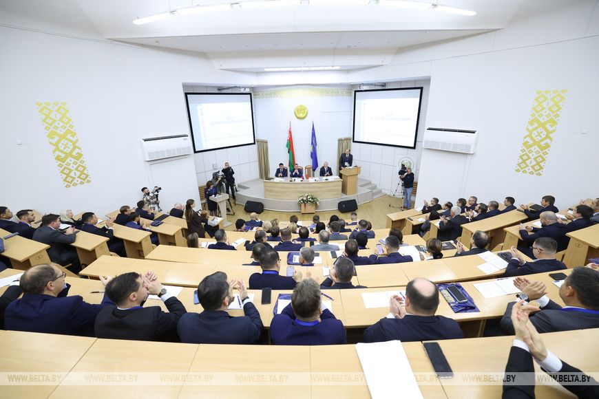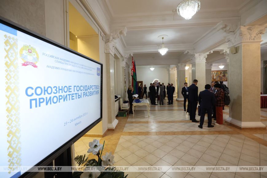 20 кастрычніка, Мінск /Кар. БЕЛТА/. Стажыроўка для прадстаўнікоў федэральнага кадравага рэзерву дзяржаўнай грамадзянскай службы Расіі "Саюзная дзяржава: прыярытэты развіцця", якая праводзіцца на базе Акадэміі кіравання пры Прэзідэнце Рэспублікі Беларусь сумесна з Расійскай акадэміяй народнай гаспадаркі і дзяржаўнай службы пры Прэзідэнце Расійскай Федэрацыі, дае магчымасць зверыць пазіцыі, паглядзець на вопыт адзін аднаго, падзяліцца ведамі. Аб гэтым журналістам расказаў рэктар Акадэміі кіравання пры Прэзідэнце Рэспублікі Беларусь Дзяніс Дук на адкрыцці стажыроўкі, перадае карэспандэнт БЕЛТА.
