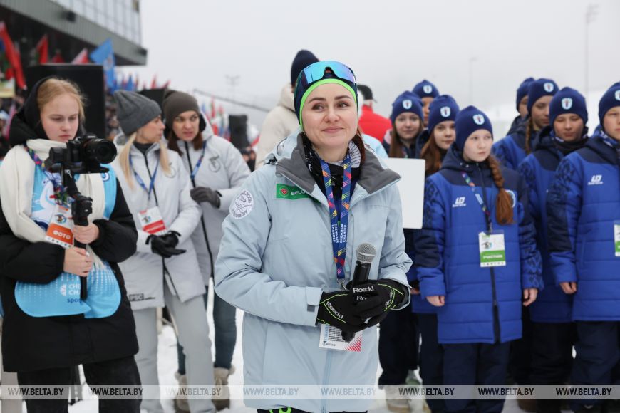 13 лютага, Мінск /Кар. БЕЛТА/. Кіраўнік Прэзідэнцкага спартыўнага клуба Дзмітрый Лукашэнка прыняў удзел у цырымоніі ўзнагароджання па выніках першага дня фіналу рэспубліканскіх спаборніцтваў па біятлоне "Снежны снайпер", паведамляе карэспандэнт БЕЛТА.